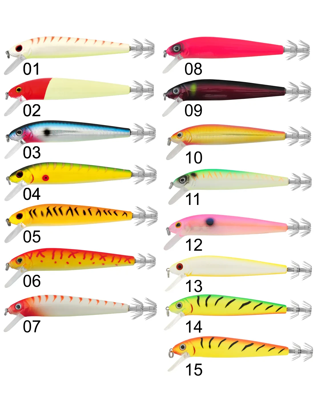 Artificiale affondante, ideato per la pesca a traina lenta o in deriva  ai calamari ed altri cefalopodi. Caratterizzato dalla parte inferiore fosforescente per una attrazione assoluta.